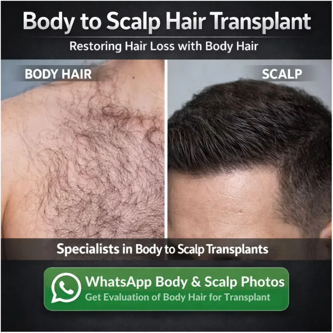 Body hair transplant can be performed from beard, chest, under arms, pubic hair and other body sites. The best graft for transplantation on scalp apart from body is beard followed by chest.