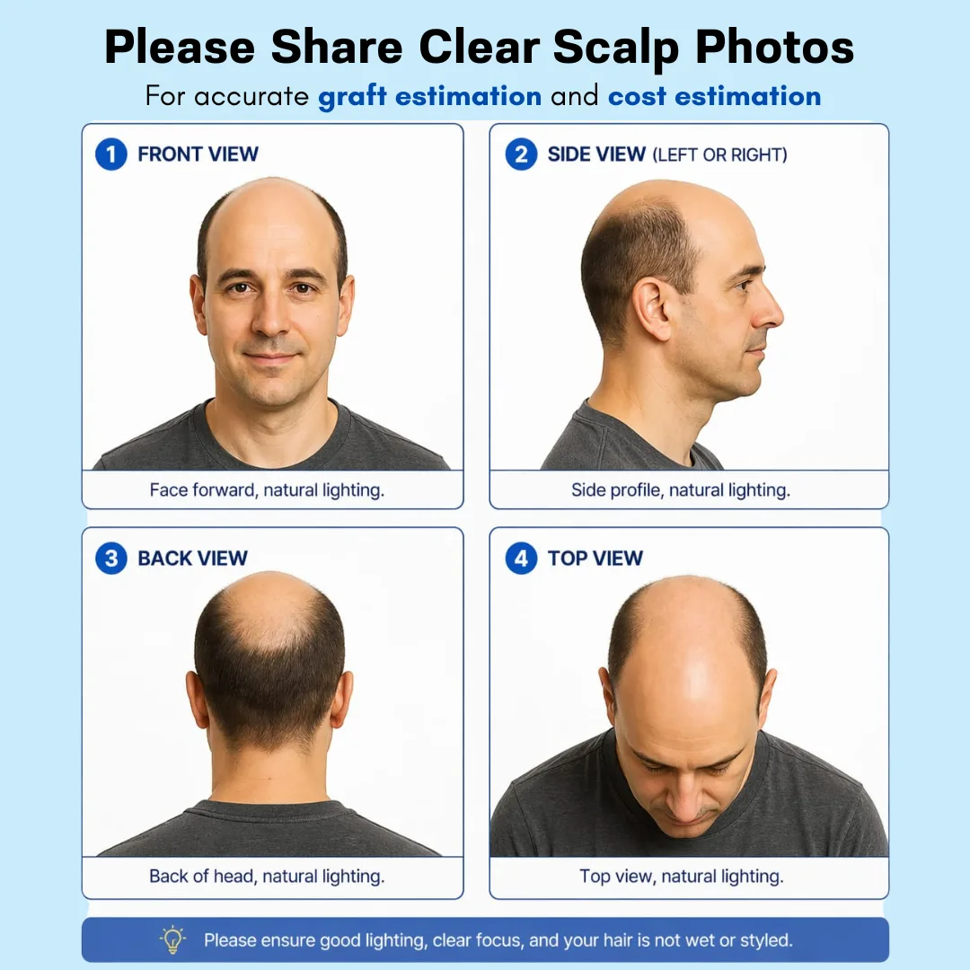 We have Special Packages for International Patients @ $2500 for 4000 grafts. (Return Air-Ticket, Airport – Pick & Drop, Guest-House Stay Included, Next to Clinic) – 4000 Hair Graft Implatation, 2 Days Sitting, $ 2500 USD